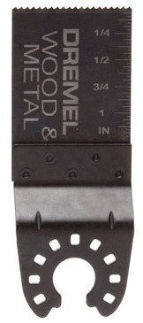 The Dremel MM462 Wood & Metal Flush Cutting Blade will make cutting doorjambs and baseboards for flooring installation a breeze. Used for precise cuts and plunge cuts, its wide 1-1/8" blade speeds through long cuts and can make plunge cuts up to 1-1/4" deep. Designed for cutting wood, drywall, plastic, and soft metal like copper and 6d-8d finishing nails. The blade's tooth pattern similar to a standard hacksaw blade. Applications include flush cutting doorjamb or windowsill, for flooring or tile installation. Sawing off water pipes (copper) and 6d-8d finishing nails. Flush cut blades are used to make precise cuts and plunge cuts. May be used on non-ferrous metals, wood, plastic, drywall and other soft materials. Specifications: Color Code Red. Depth of Cut 1-1/4". Quantity 1. Width 1-1/8".
