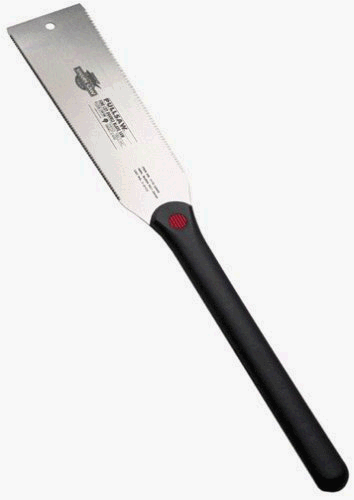 9-1/2" 9 Point (Rip) & 17 Point (Crosscut), Double Bladed .30" & .28" Kerf Carbon Steel Blades Japanese Backsaw Three Cutting Edges Per Tooth, Rips & Cross Cuts High Impact ABS Plastic Handle, Push Button Release For Storage & Blade Replacement Uses Blade #01-2440
